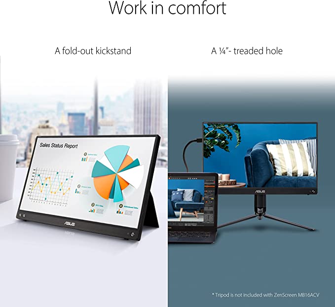 - Kickstand design prop the monitor up in either portrait or landscape mode easily.