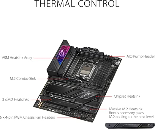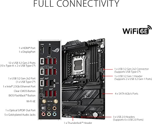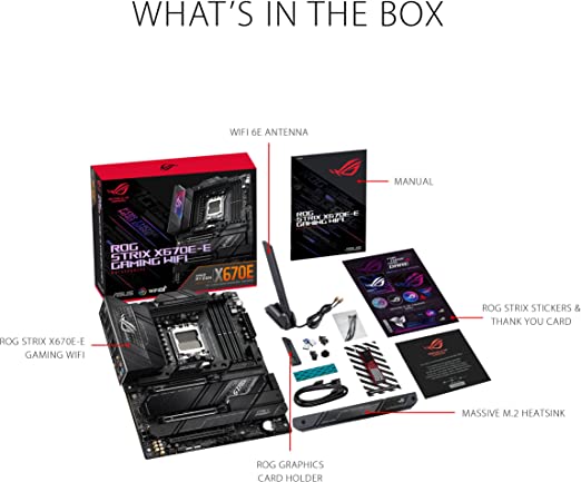 The ROG Strix X670E-E Gaming WiFi is perched at the top of the series, packing robust power delivery and exclusive ROG overclocking tools to max out the stats of AMD Ryzen™ 7000 Series processors. PCIe 5.0 support extends to the furthest reaches of chipset capabilities, and an additional beefy heatsink is prepped to keep even the fastest M.2 drives chilled. With leading performance, the latest connectivity, and DIY-friendly features that span from hardware installation to system setup, this Strix beast grips AM5 and effortlessly soars to victory.