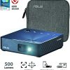 - Up to 500 lumens light output with 720p native resolution, 100% NTSC color saturation short throw lens provides 40”@1m to 120”@3m projection