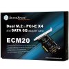 SilverStone’s ECM20 is an adapter designed for users wanting to utilize or add speedy M.2 devices such as SSD onto their existing PC or motherboard. In addition to supporting one M.2 device (M key) to run via the super fast PCI-E interface at up to 32Gbps, a second M.2 slot (B key) is available for connecting to a SATA III port for added storage potential. For users looking to have the fastest data access speed on a desktop computer, the ECM20 is a must have.