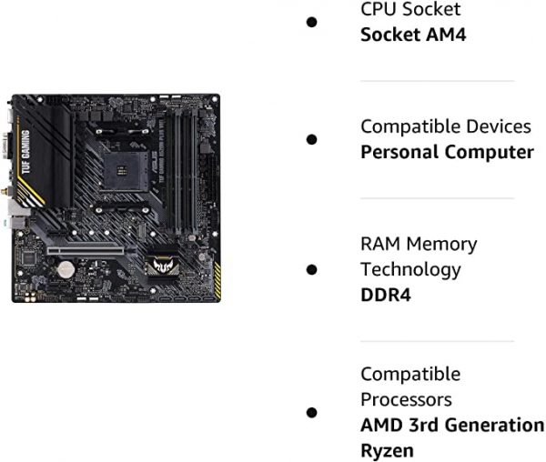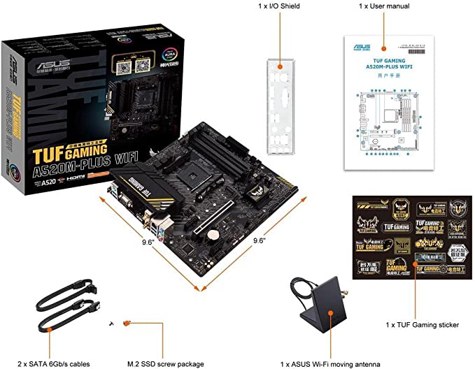 TUF Gaming A520M-Plus WIFI distills essential elements of the latest AMD platform and combines them with game-ready features and proven durability. Engineered with military-grade components, an upgraded power solution and a comprehensive set of cooling options, this motherboard delivers rock-solid performance with unwavering gaming stability.