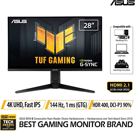 • 28-inch UHD (3840 x 2160) Fast IPS gaming monitor with 144 Hz refresh rate and 1 ms (GTG) response time, designed for professional gamers